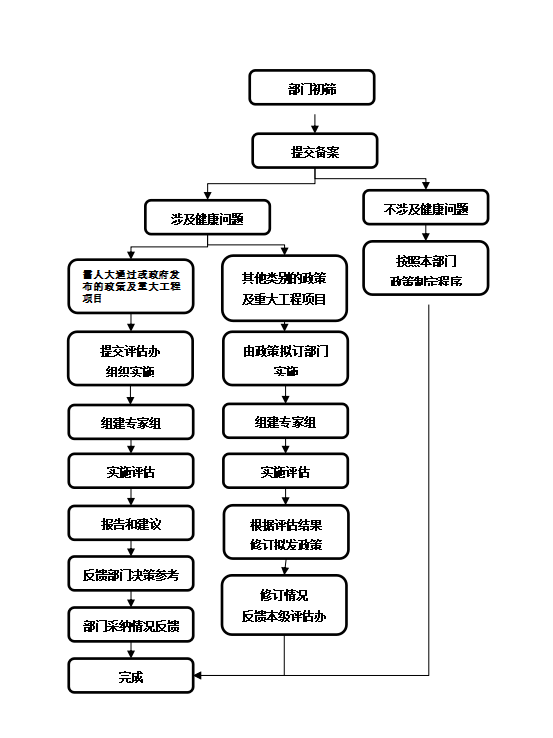其他类别的政策及重大工程和项目的健康影响评估由政策拟订部门负责实施,可参照本工作流程。