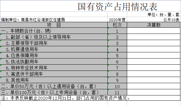 十、国有资产占用情况表