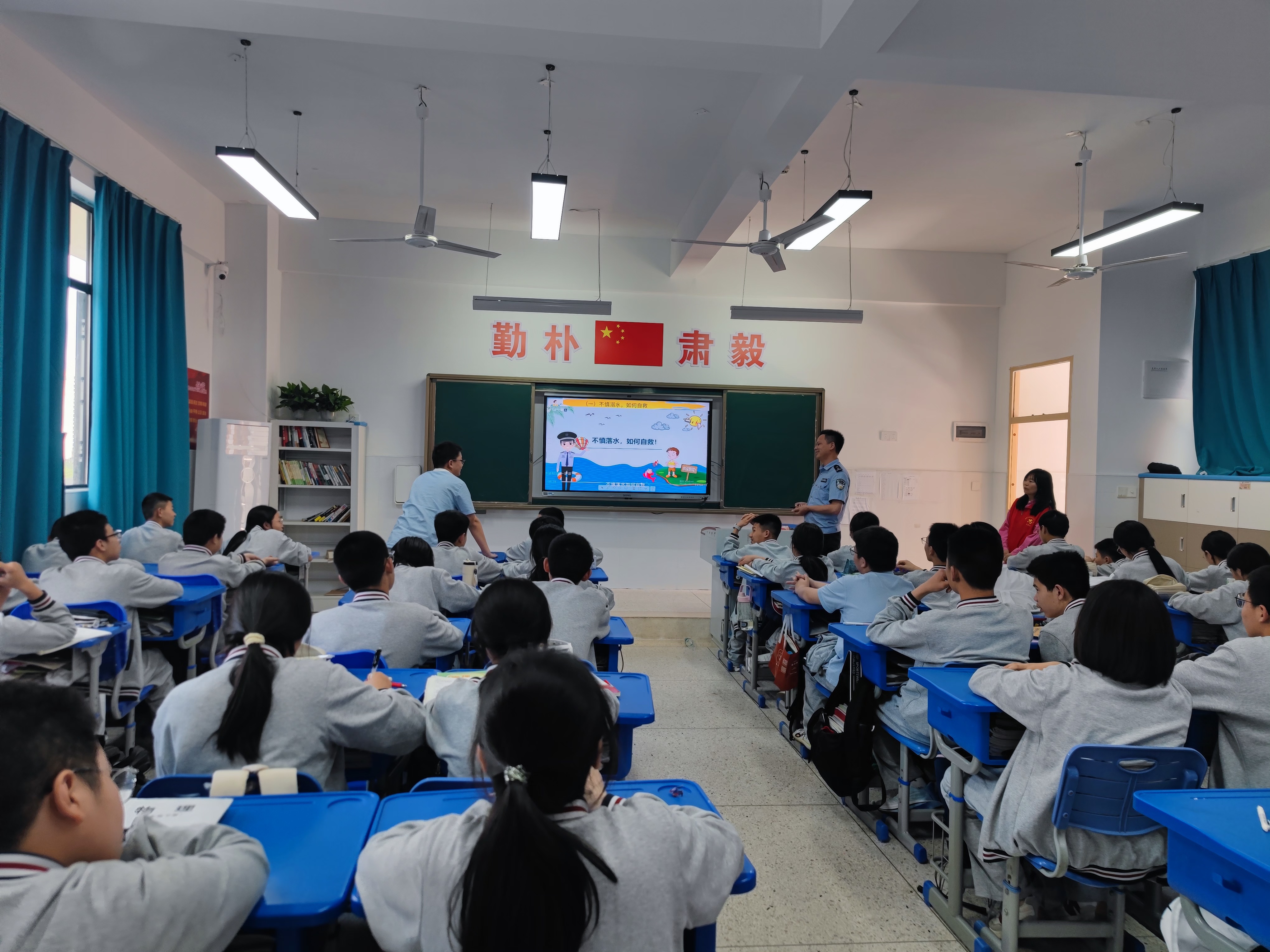 夏日渐近,溺水事故进入高发期,为进一步加强防溺水安全教育,增强青少年的防溺水安全意识,避免溺水事故的发生,4月25日下午,瑞城社区联合红角洲派出所民警走进南昌市心远中学校园课堂开展防溺水安全教育宣传活动。