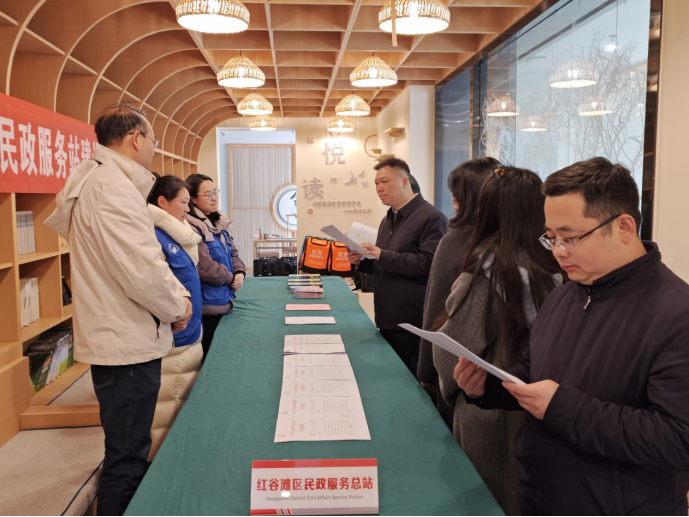 2025年2月11日下午,南昌市民政局局长戴闽、二级调研员邱锐来我区调研民政服务站建设工作,红谷滩区民政局局长卢瑾萍,九龙湖街道办事处主任王鑫陪同。