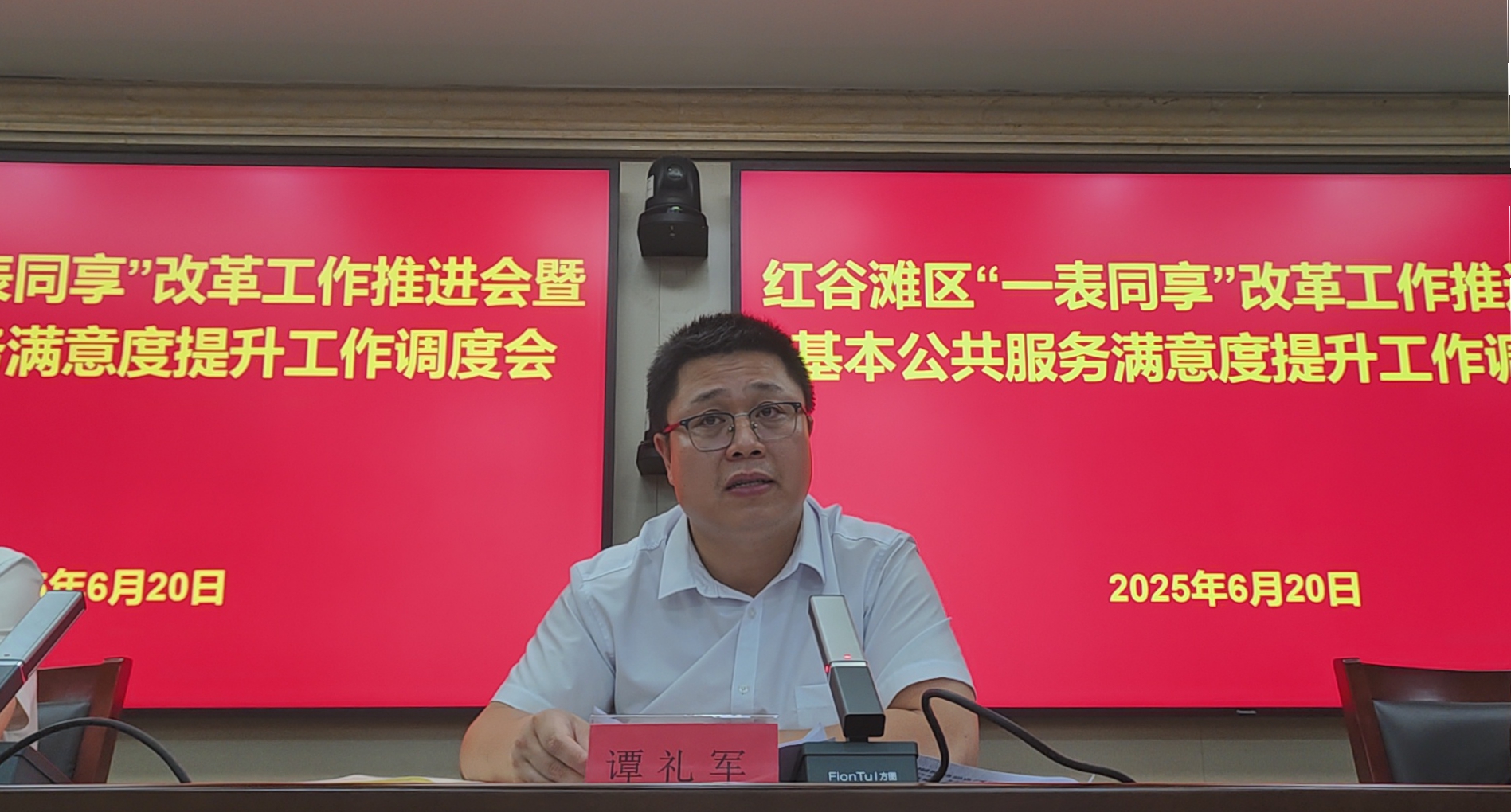 谭礼军指出,“一表同享”改革已进入攻坚阶段,任务艰巨、责任重大,要以更大的决心、更实的举措、更严的作风,全力推进改革工作,不断提升我区政务服务效能和基层治理能力。