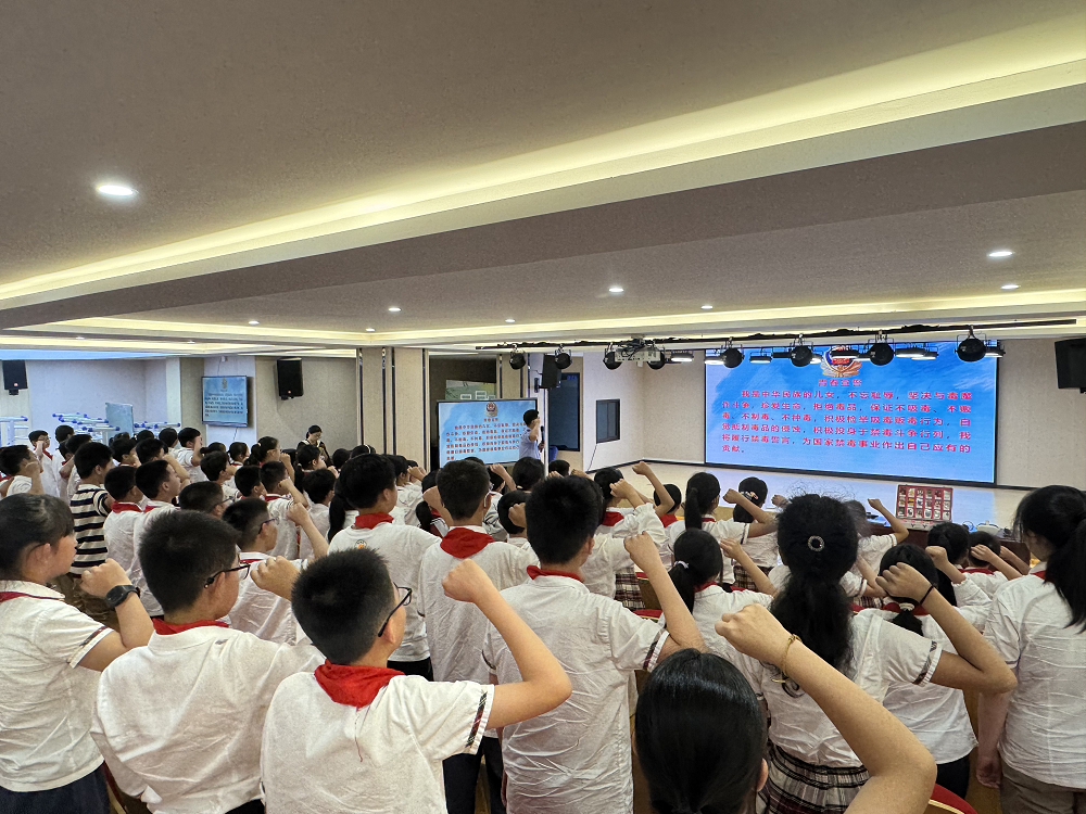 在肖敏警官的带领下,全场师生整齐肃立,高举右拳,齐声宣读禁毒誓言,字字铿锵、句句有力,表达了坚决抵制毒品、打击毒品犯罪的决心与信心。