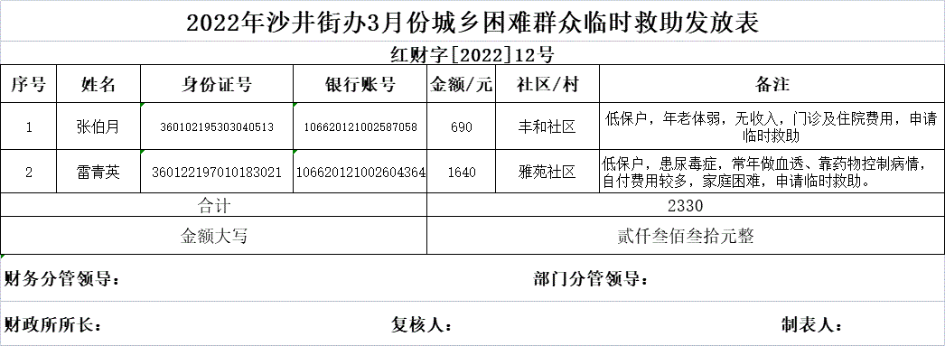 沙井街道2022年3月临时救助公示
