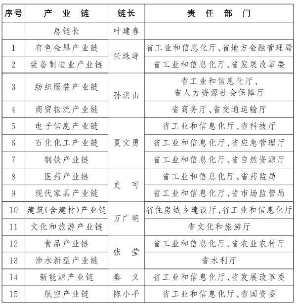 江西省人民政府办公厅关于印发省重点产业链链长分工安排的通知
